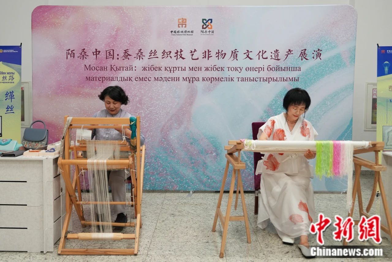 當(dāng)?shù)貢r(shí)間2025年6月16日,哈薩克斯坦“中國(guó)旅游年”開(kāi)幕式在位于阿斯塔納的哈薩克斯坦國(guó)家博物館舉行。圖為手工藝者在非遺體驗(yàn)活動(dòng)中演示緙絲、臺(tái)繡等傳統(tǒng)技藝。 中新社記者 單璐 攝