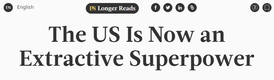 近日,世界報(bào)業(yè)辛迪加網(wǎng)站刊登一篇文章,標(biāo)題是《美國已經(jīng)成為一個(gè)榨取型的超級大國》。