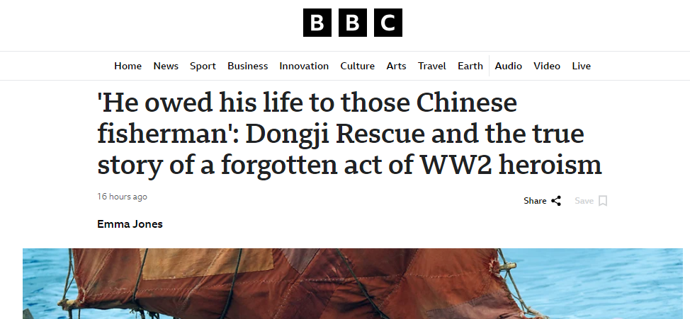 暑期檔電影《東極島》正在熱映,影片講述了1942年,一艘搭載英軍戰(zhàn)俘的船只在舟山群島附近被潛艇擊沉,上千名戰(zhàn)俘被封鎖在船艙內(nèi),命懸一線。危難之際,東極島上的漁民,不顧風(fēng)高浪急與生命危險(xiǎn),毅然駛向深海救人的故事。近日,英國廣播公司網(wǎng)站發(fā)表一篇文章回顧了相關(guān)歷史事件,標(biāo)題是《“他的生命歸功于中國漁民”:東極島救援與二戰(zhàn)中一段被塵封的英雄事跡》。
