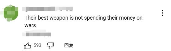 有美國網(wǎng)友表示,中國最好的“武器”,是不把錢花在發(fā)動戰(zhàn)爭上。