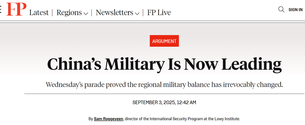 洛伊研究所國際安全項目主任薩姆·羅格維恩在美國《外交政策》網站撰文稱,西方的軍事規(guī)劃人員會對閱兵式上展出的裝備感到驚訝,已經不能再說中國軍隊在迎頭趕上,或者所謂“抄襲”外國軍事裝備設計,“中國軍備正在創(chuàng)新,并且處于領先地位”。