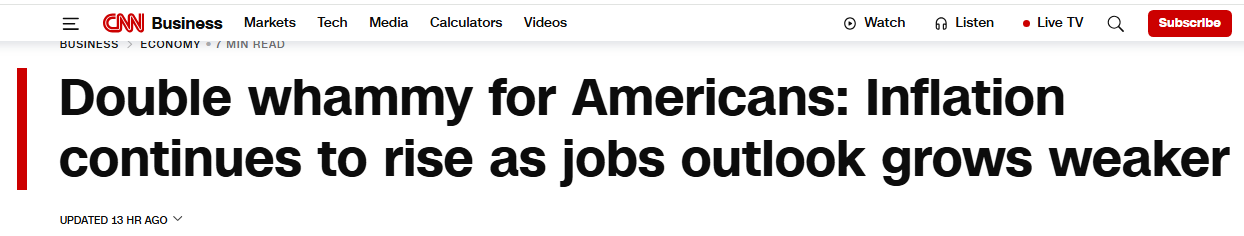 CNN報道稱,普通消費(fèi)者的感受最直接:日常生活開支越來越多,但收入增長跟不上物價漲幅,家庭財務(wù)壓力持續(xù)加大。