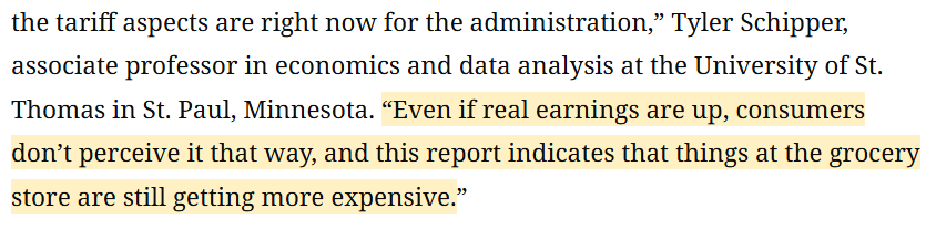 經(jīng)濟(jì)學(xué)家泰勒 施皮珀(Tyler Schipper)直言:“老百姓感受不到工資上漲,他們只知道超市商品的價格越來越貴?!?/p>