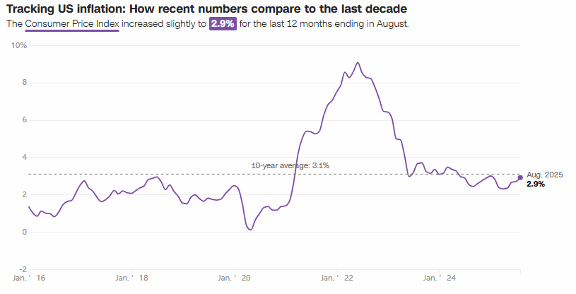 美國勞工統(tǒng)計局最新數(shù)據(jù)顯示,2025年8月消費(fèi)者價格指數(shù)(CPI)環(huán)比上漲0.4%,年通脹率攀升至2.9%,不僅創(chuàng)下今年1月以來的最高水平,而且增速超過7月的2.7%。