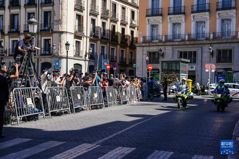 9月14日,在西班牙馬德里,媒體記者在中美經(jīng)貿(mào)會談地點外等待。新華社記者 彭子洋 攝