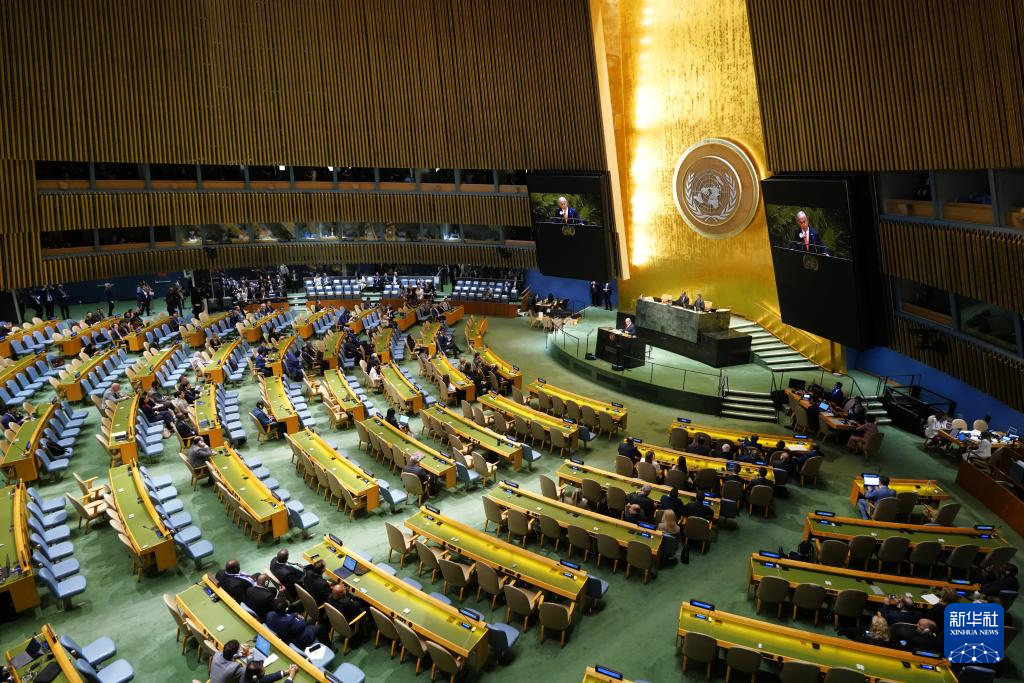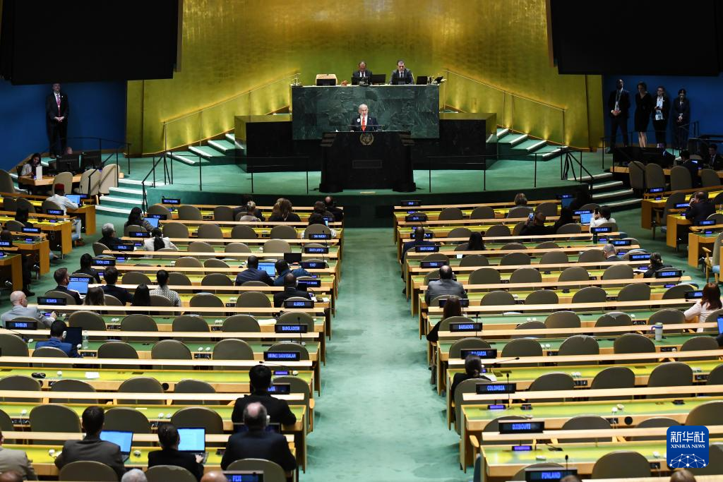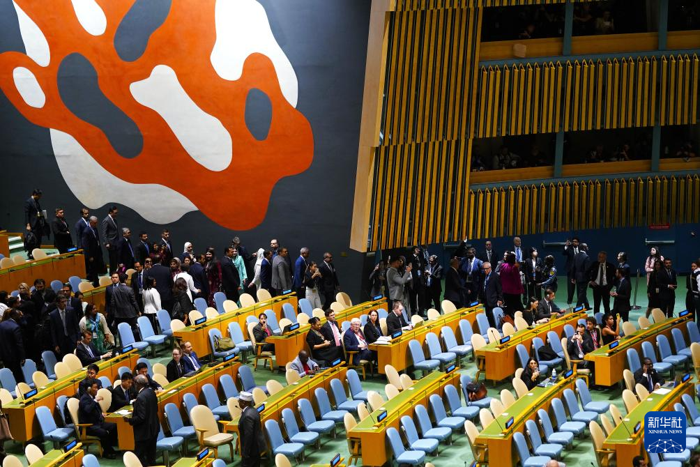 9月26日,在位于紐約的聯(lián)合國(guó)總部,眾多代表退場(chǎng)抗議。新華社記者李睿攝