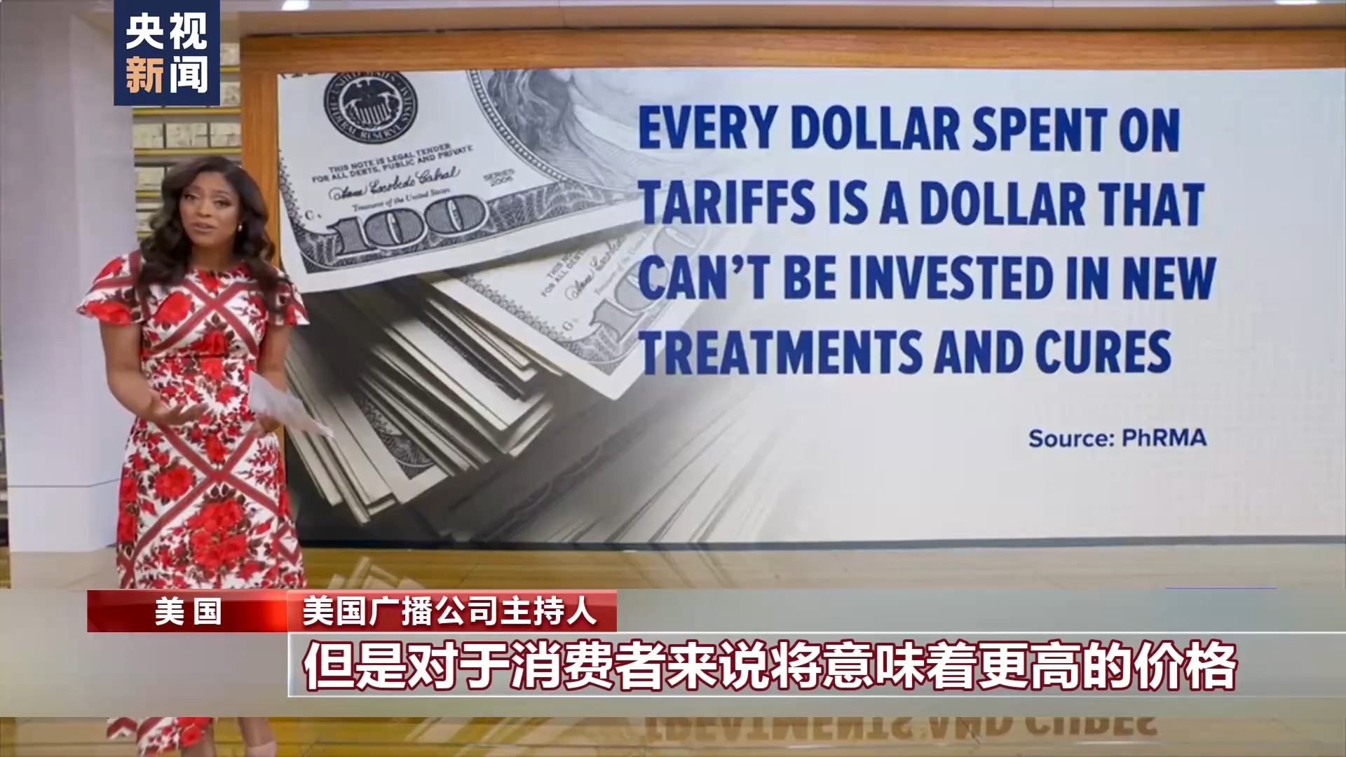 美國廣播公司主持人:美國藥物研究機構和制藥廠商協(xié)會指出,在關稅上多花的每一美元,都無法用于投資新治療方法的開發(fā)。政府說加關稅是為了國家安全、為了提振美國制造業(yè),但是對于消費者來說,將意味著更高的價格。