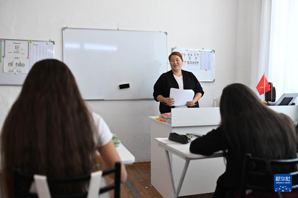 9月22日,在吉爾吉斯斯坦伊塞克湖州卡拉庫(kù)爾市,庫(kù)巴內(nèi)奇別科娃在中文培訓(xùn)中心授課。新華社記者 李任滋 攝