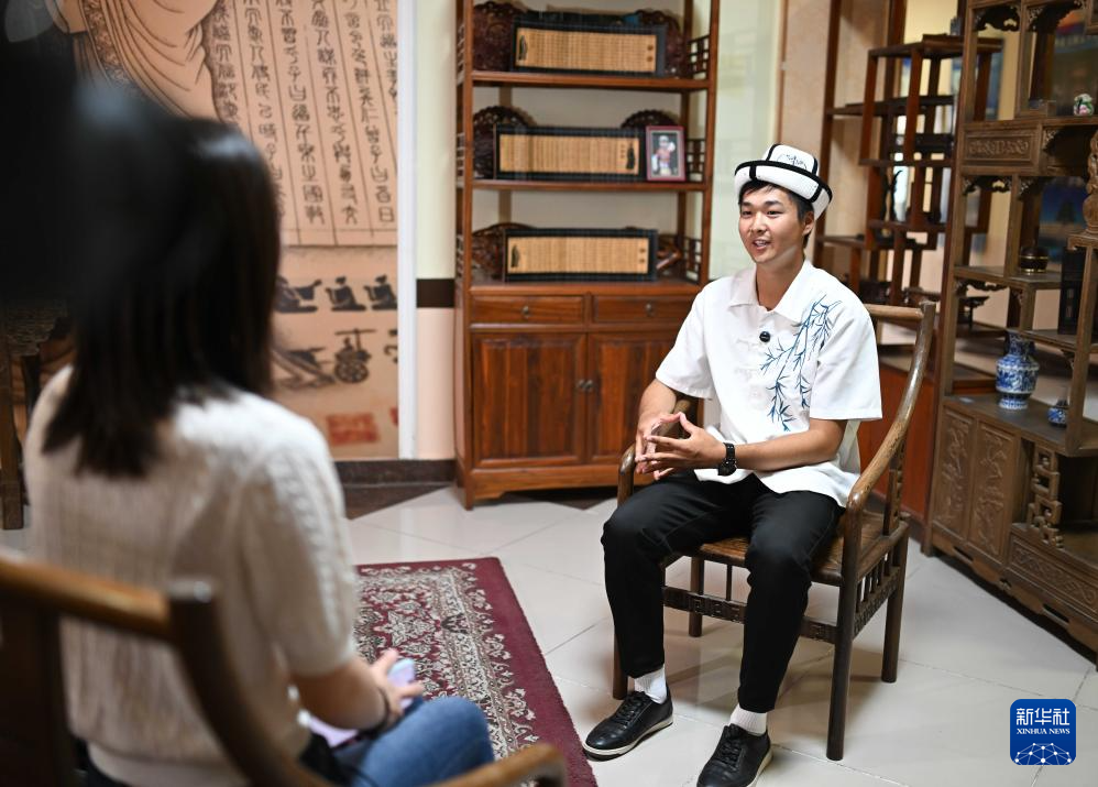 9月18日,在吉爾吉斯斯坦奧什國(guó)立大學(xué)孔子學(xué)院,學(xué)生克爾季巴耶夫接受新華社記者采訪。新華社記者 李任滋 攝