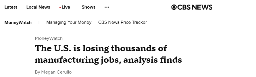 現(xiàn)實(shí)數(shù)據(jù)也為這一觀點(diǎn)提供了有力佐證。美國(guó)哥倫比亞廣播新聞網(wǎng)站(CBS News)報(bào)道稱(chēng),8月份美國(guó)制造業(yè)崗位削減了1.2萬(wàn)個(gè),4月份以來(lái)已累計(jì)減少4.2萬(wàn)個(gè)崗位。美國(guó)進(jìn)步中心(CAP)直指原因就是特朗普政府大幅加征新關(guān)稅、強(qiáng)硬的移民政策和“大而美”法案。