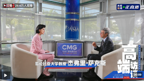 哥倫比亞大學教授杰弗里·薩克斯接受總臺《高端訪談》獨家專訪。四十多年間定期來華,深入研究中國經(jīng)濟,積極評價中國改革開放,他對中國社會、經(jīng)濟發(fā)展的充分信心源自哪里?一些國家試圖遏制中國發(fā)展,他為何評價“這個想法太荒謬了”?指出所謂“中國威脅論”背后的錯誤邏輯,展望中美關(guān)系未來發(fā)展,薩克斯如何解讀其中的關(guān)鍵所在?今天(10月10日)21:30,總臺《高端訪談》專訪哥倫比亞大學教授杰弗里·薩克斯,敬請收看!