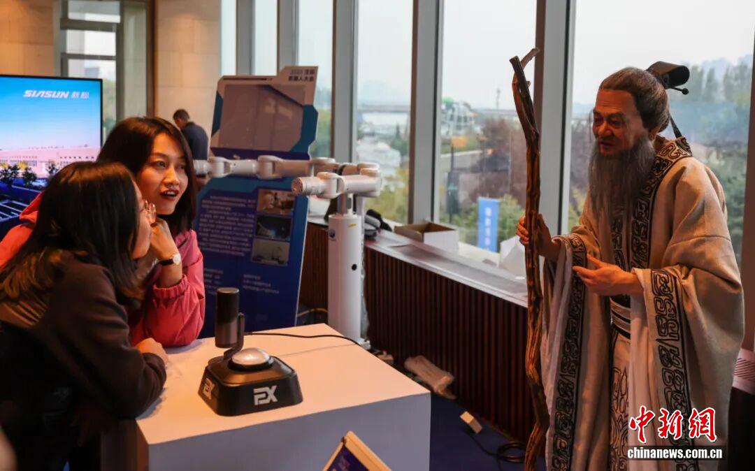 2025年10月17日,2025沈陽機(jī)器人大會(huì)在遼寧沈陽開幕。圖為觀眾與交互型仿生人形機(jī)器人孔子互動(dòng)。 中新社記者 于海洋 攝
