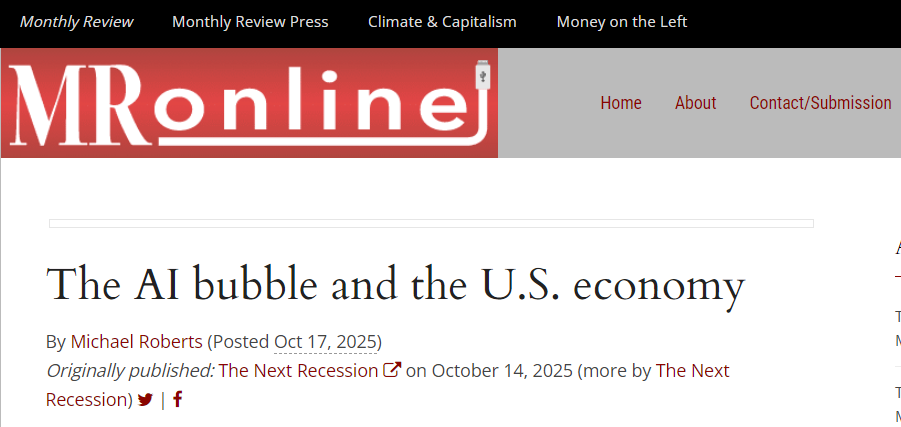 彭博社專(zhuān)欄文章評(píng)論稱(chēng),美國(guó)AI產(chǎn)業(yè)被神話為GDP增長(zhǎng)引擎,卻弱化了勞動(dòng)力市場(chǎng)需求。虛擬投資雖抬高GDP數(shù)字,但掩蓋了實(shí)體經(jīng)濟(jì)的萎縮。