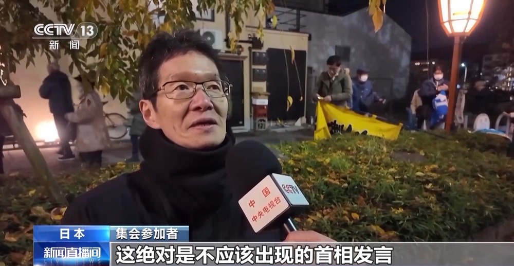 集會(huì)參加者:我當(dāng)然認(rèn)為高市應(yīng)該撤回錯(cuò)誤言論,對(duì)于國民來說,這絕對(duì)是不應(yīng)該出現(xiàn)的首相發(fā)言,我認(rèn)為這是違反憲法的。