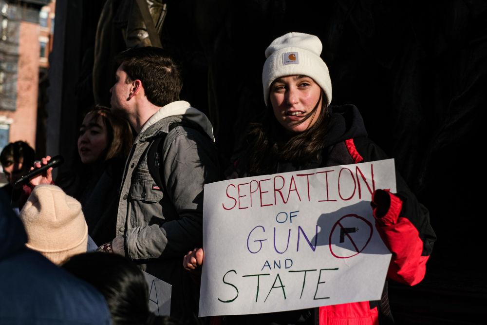 2023年2月24日,在美國馬薩諸塞州波士頓,當?shù)貙W生參加反槍支暴力集會。新華社發(fā)(朱子于攝)