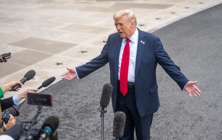 2025年9月30日,在美國首都華盛頓白宮,美國總統(tǒng)特朗普回答記者提問時表示,美國政府正在考慮打擊通過陸路向美國走私毒品的委內(nèi)瑞拉販毒集團。新華社記者 胡友松 攝