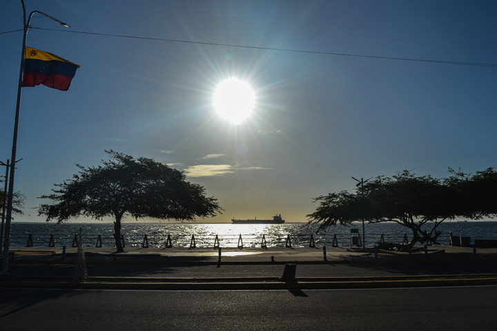 2025年12月23日,一艘油輪停泊在委內(nèi)瑞拉蘇利亞州馬拉開波湖上。當?shù)啬繐粽呷涨跋蛐氯A社透露,23日在該國西部馬拉開波湖這一核心產(chǎn)油區(qū),仍可見油輪正在等待出?;虼┻^拉斐爾·烏達內(nèi)塔將軍大橋進入巴霍格蘭德港口。新華社發(fā)