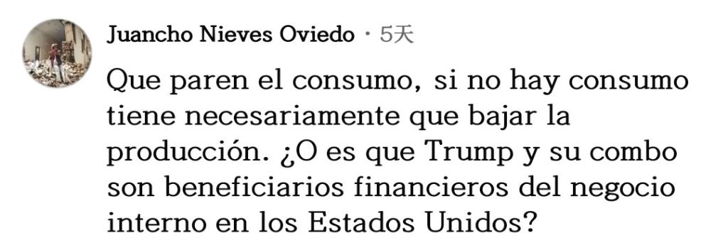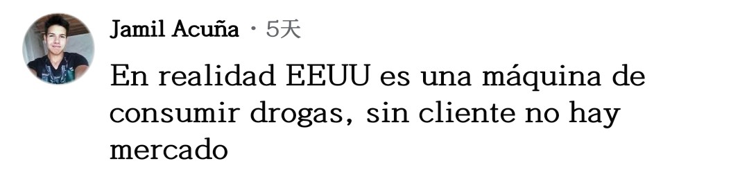 網(wǎng)友胡安喬·奧維多一針見血:“停止(毒品)消費吧,如果沒人消費,生產(chǎn)必然下降。莫非特朗普和他的團(tuán)隊是美國國內(nèi)毒品生意的受益者?”