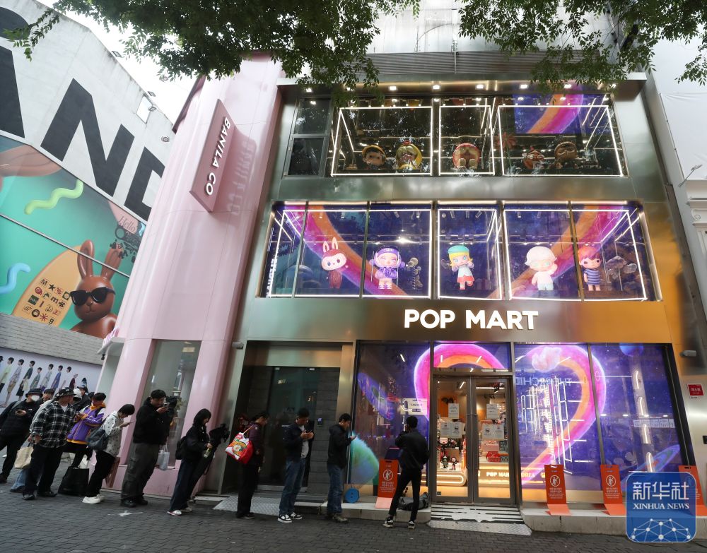2025年5月20日,消費(fèi)者在韓國(guó)首爾明洞街區(qū)的泡泡瑪特店面前排隊(duì)。