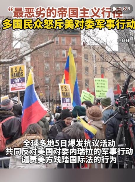同日,大批阿根廷民眾在布宜諾斯艾利斯的美國駐阿根廷大使館附近舉行反戰(zhàn)示威活動?;顒咏M織者指出,美國對委內(nèi)瑞拉的軍事襲擊公然違反了《聯(lián)合國憲章》,這種無視國際法的單邊行動,將會把所有人置于“強(qiáng)權(quán)即公理”的危險局面中。