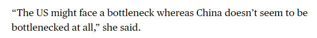 文章同時(shí)提到,相比之下,美國(guó)在幾十年前電力需求似乎趨于平穩(wěn)后,新增裝機(jī)速度一直較慢。如今,隨著人工智能的迅猛發(fā)展,美國(guó)正艱難應(yīng)對(duì)數(shù)據(jù)中心等高耗能行業(yè)的電力需求,導(dǎo)致電力市場(chǎng)極為緊張。文章援引業(yè)內(nèi)人士的話說(shuō):“美國(guó)可能會(huì)面臨瓶頸,而中國(guó)似乎完全沒(méi)有瓶頸?!?/p>