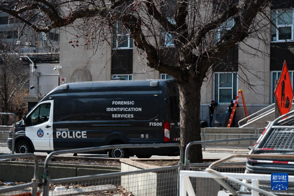 3月10日,警察在加拿大多倫多的美國(guó)駐多倫多總領(lǐng)館外勘察。新華社發(fā)(李海濤攝)