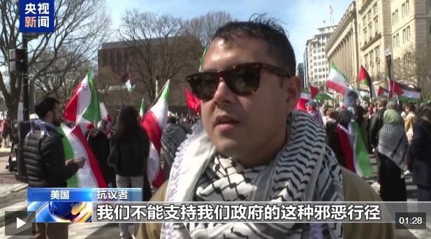 抗議者:我認為今天美國人走上街頭尤為重要,因為我們的政府對伊朗一所女子學校發(fā)動導彈襲擊。這種行為根本無法用任何理由來辯解,我們政府的行為是邪惡的。我希望美國人能走上街頭表達這一點,表達大家的反對意見,我們不能支持我們政府的這種邪惡行徑。