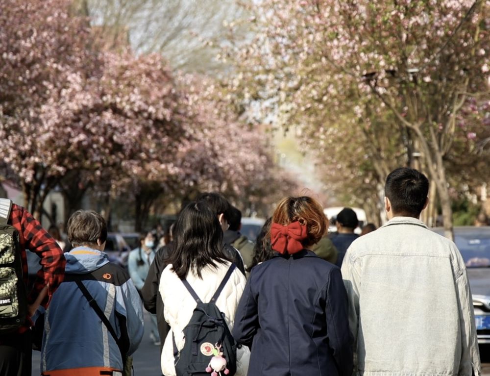 在北京上學的張曉筱和同學第一次來天津旅游?!拔宕蟮辣旧砭褪锹糜尉包c,春天海棠花開,很值得來打卡?!彼χf。