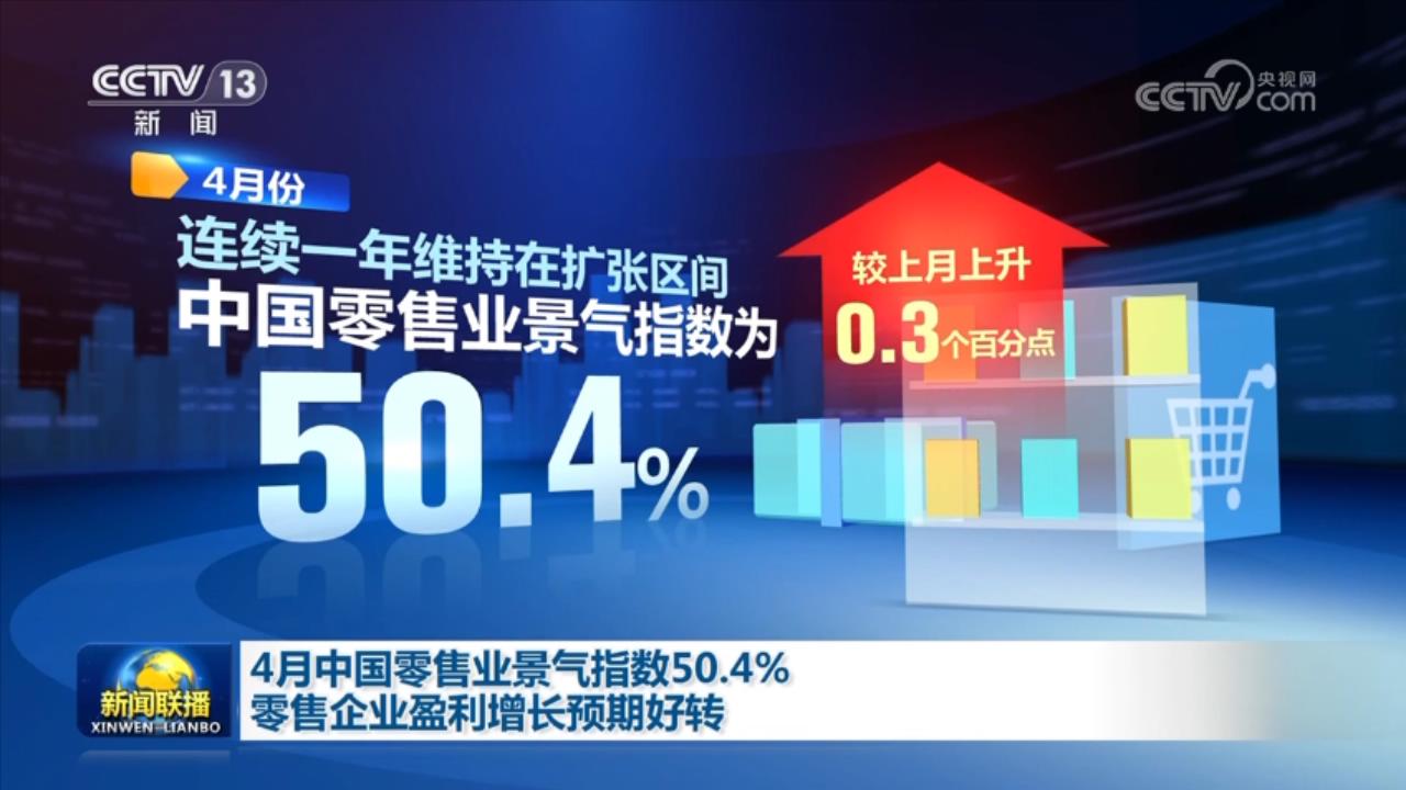 中國商業(yè)聯(lián)合會最新發(fā)布的中國零售業(yè)景氣指數(shù)顯示,4月份,中國零售業(yè)景氣指數(shù)為50.4%,較上月上升0.3個百分點(diǎn),連續(xù)一年維持在擴(kuò)張區(qū)間。從行業(yè)分類看,商品經(jīng)營類指數(shù)、租賃經(jīng)營類指數(shù)、電商經(jīng)營類指數(shù),較上月均有上升。
