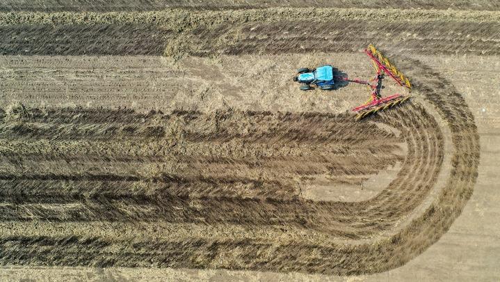4月2日,在吉林省公主嶺市范家屯鎮(zhèn)乾程農(nóng)民專業(yè)合作社,農(nóng)民駕駛農(nóng)機(jī)整理耕地。