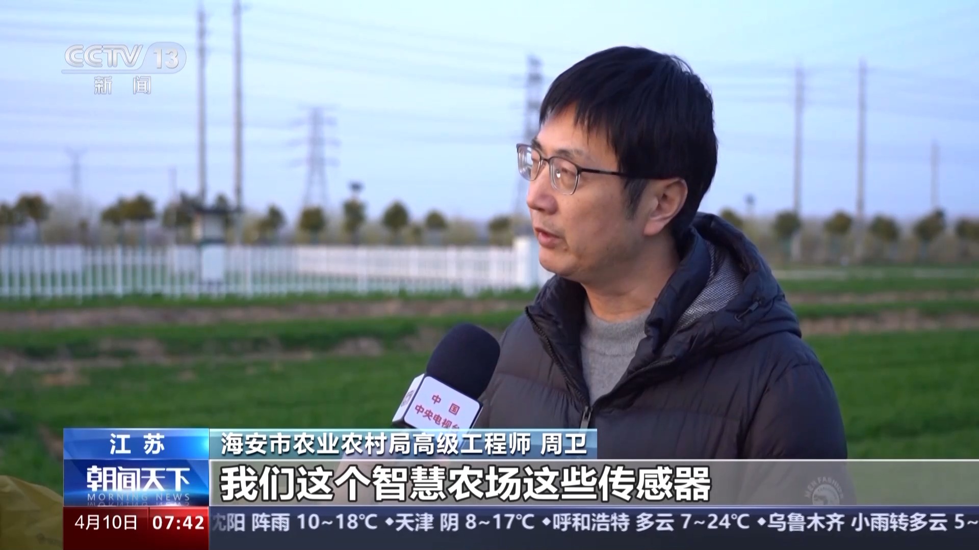 海安市農(nóng)業(yè)農(nóng)村局高級(jí)工程師 周衛(wèi):國(guó)家就把整個(gè)渠道、道路、灌溉系統(tǒng)修好,我們這個(gè)智慧農(nóng)場(chǎng)這些傳感器基本上都是國(guó)家補(bǔ)貼的。