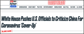 ▲美國《野獸日報(bào)》報(bào)道截圖,題為《白宮推動官員批評中國掩蓋新冠肺炎疫情》