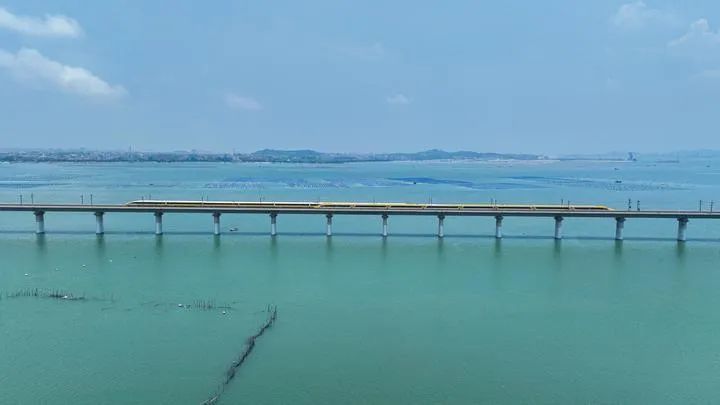 2023年6月28日,CR450動車組試驗(yàn)列車在湄洲灣跨海大橋交會運(yùn)行,單列最高運(yùn)行時速達(dá)到453公里。(鐵科院集團(tuán)公司供圖)