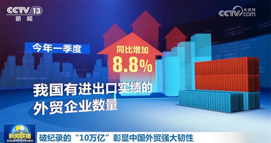 一季度,我國貨物貿(mào)易進出口規(guī)模歷史同期首次突破10萬億元,增速創(chuàng)6個季度以來新高。一季度進出口令人欣喜的數(shù)據(jù)彰顯了中國外貿(mào)的強大韌性,提振了人們對實現(xiàn)今年經(jīng)濟增長目標(biāo)的信心。