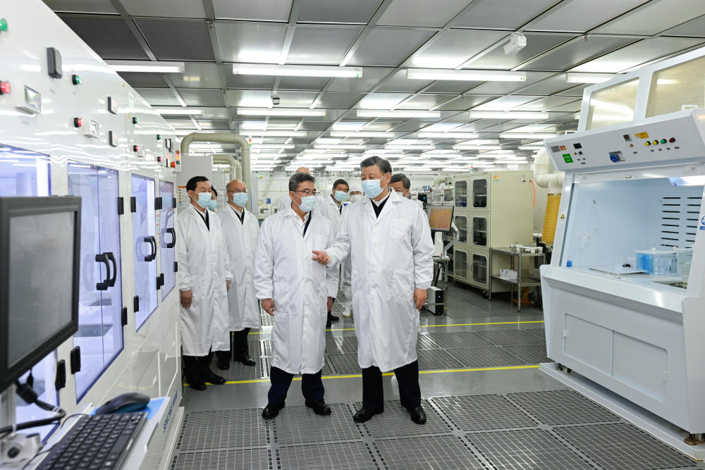 2023年5月11日至12日,習(xí)近平在河北考察,并主持召開(kāi)深入推進(jìn)京津冀協(xié)同發(fā)展座談會(huì)。這是12日上午,習(xí)近平在位于石家莊市的中國(guó)電科產(chǎn)業(yè)基礎(chǔ)研究院生產(chǎn)車間考察。