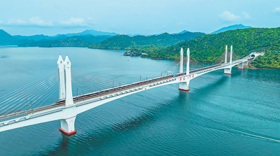 圖為4月26日,復興號智能動車組列車駛過池黃高鐵太平湖特大橋。王 磊攝(人民視覺)