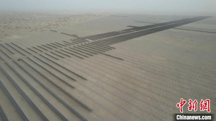 截至3月底,中電建25萬千瓦光伏項目已完成光伏板基樁的建設(shè)和第一期5萬余塊光伏板的安裝。今年6月,這里將建成一個占地約7000畝、年發(fā)電量4.14億千瓦時的光伏基地,并配套建設(shè)一座220千伏升壓站,通過“光伏+治沙”筑牢生態(tài)防線。