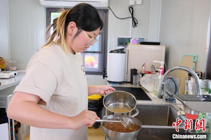 王美淳制作“珍珠奶茶”。 林波攝