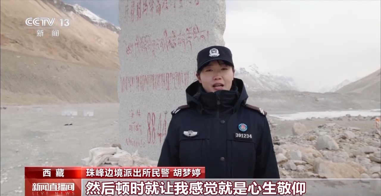 珠峰邊境派出所民警 彭莉:駐守在這里我覺得不僅可以守衛(wèi)世界最高峰,領(lǐng)略世界之巔的風(fēng)采,而且我覺得更多的是一種責(zé)任和擔(dān)當(dāng),我希望自己是一顆種子,可以在這里生根發(fā)芽,奮力生長。