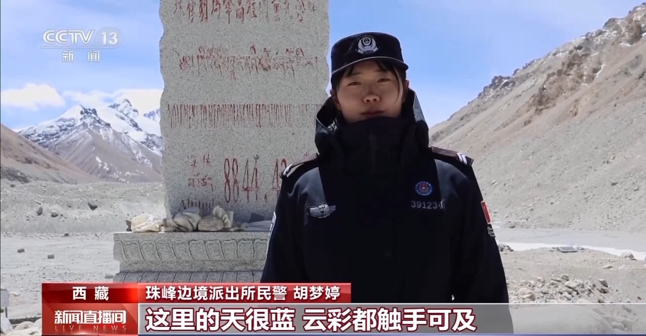 珠峰邊境派出所民警 胡夢婷:這里的天很藍(lán),云彩都觸手可及。珠穆朗瑪峰,世界最高峰,對于我來說不再是課本上那遙不可及的存在,而是我已經(jīng)抵達(dá)并駐守的地方。
