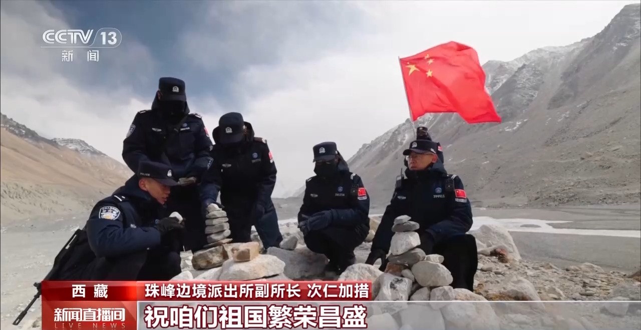 珠峰邊境派出所副所長 次仁加措:我們每次到這個(gè)地方,有一個(gè)儀式,就是把石頭壘在這里,表達(dá)我們的祝福。祝祖國繁榮昌盛,也祝我們心想事成。