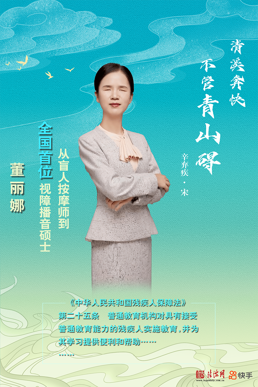 董麗娜先天弱視,10歲失明。但她自強(qiáng)不息、排除萬(wàn)難,在22歲時(shí)爭(zhēng)取到視障人士播音培訓(xùn)機(jī)會(huì),獲得一級(jí)甲等普通話(huà)證書(shū),成為《麗娜品讀時(shí)間》的主持人。2020年考入中國(guó)傳媒大學(xué)攻讀碩士學(xué)位,2023年畢業(yè)成為全國(guó)首位視障播音碩士。