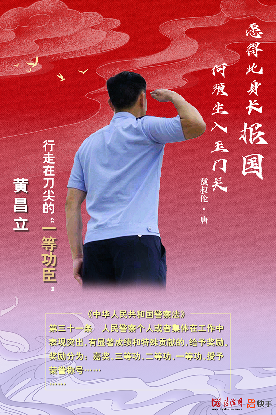 黃昌立受軍人父親影響,從小便向往軍警職業(yè)。2009年,他從警校畢業(yè),成為廣西出入境邊防檢查總站崇左邊境管理支隊(duì)的一員。他曾多次與帶槍毒販正面交鋒,直面毒販的刀刃和槍口。因工作成績(jī)突出,被評(píng)為一等功臣、全國(guó)公安系統(tǒng)二級(jí)英雄模范。