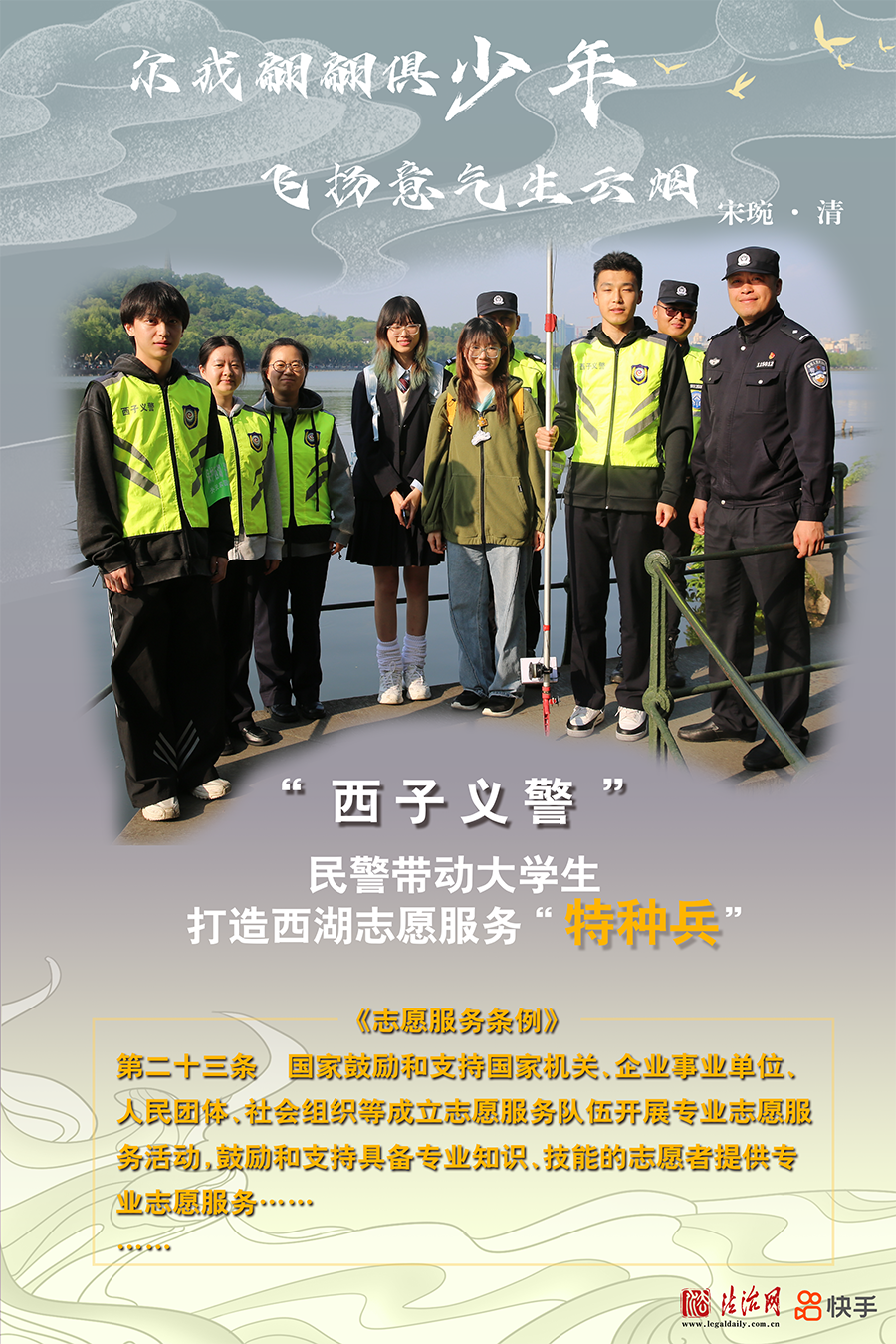 浙江省杭州市公安局西湖風(fēng)景名勝區(qū)分局組織公安巡特警、消防、交警、行政執(zhí)法、平安志愿者等各方力量參與社會(huì)治理工作,逐漸壯大的“西子義警”隊(duì)伍已成為西湖邊守望平安的重要力量。近期,一群朝氣蓬勃的青年大學(xué)生加入“西子義警”隊(duì)伍,共同營(yíng)造更加和諧的西湖景區(qū)平安環(huán)境。