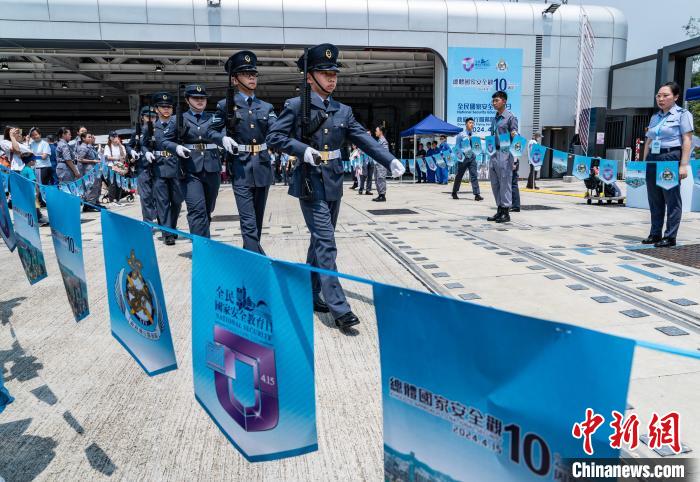 4月13日,香港特區(qū)政府保安局下轄的各紀律部隊舉行“全民國家安全教育日”開放日活動。圖為香港航空青年團成員在政府飛行服務(wù)隊開放日活動上展示中式步操。(資料圖片) 中新社記者 侯宇 攝