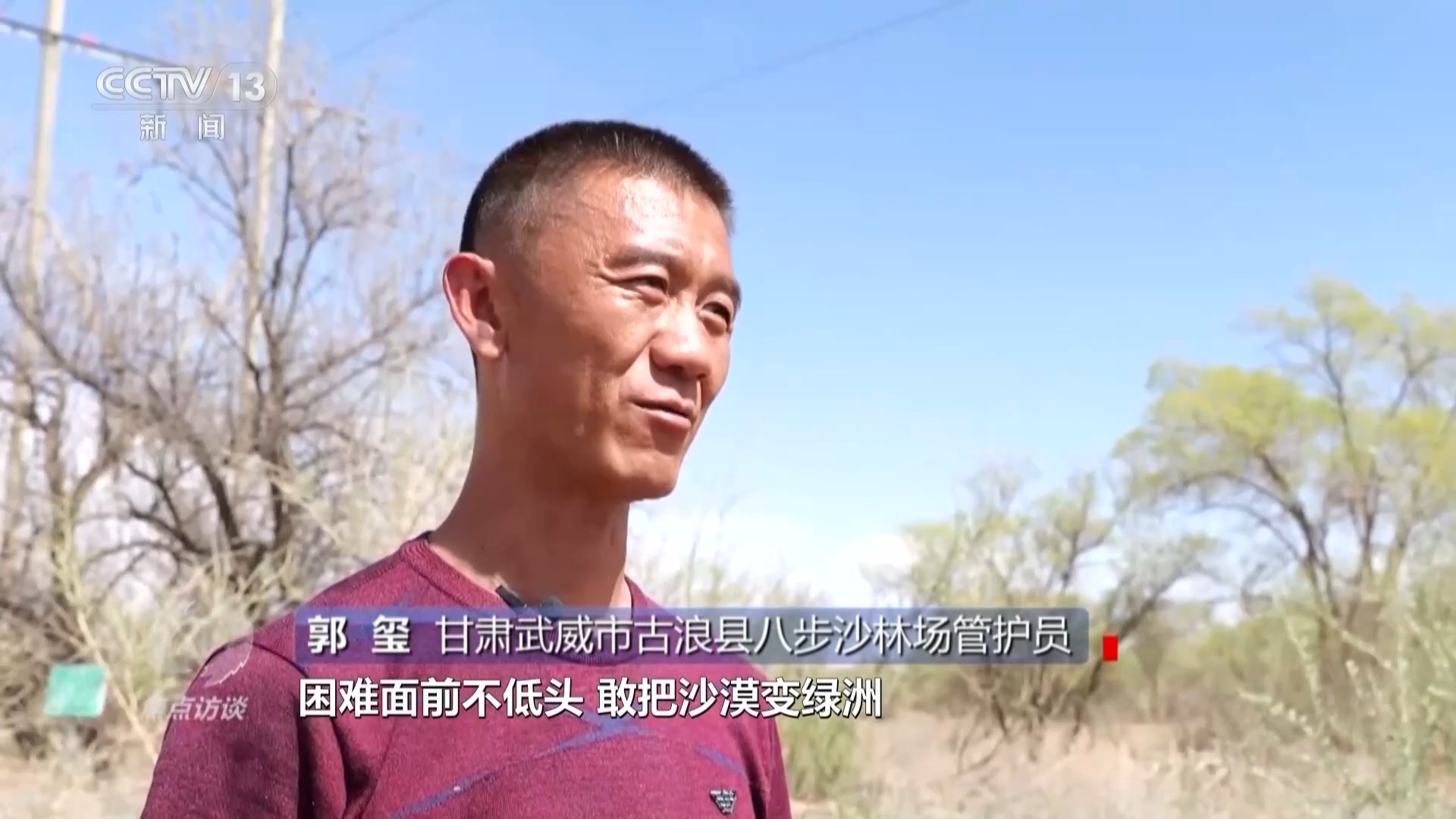 甘肅武威市古浪縣八步沙林場(chǎng)管護(hù)員 郭璽:爺爺和父輩他們都是肚子吃不飽的情況下治沙,他們也是把青春付出到沙漠里面來,所以說我想留下來。沒有我想象那么簡單,種樹難,澆水難,所有的事情都難。