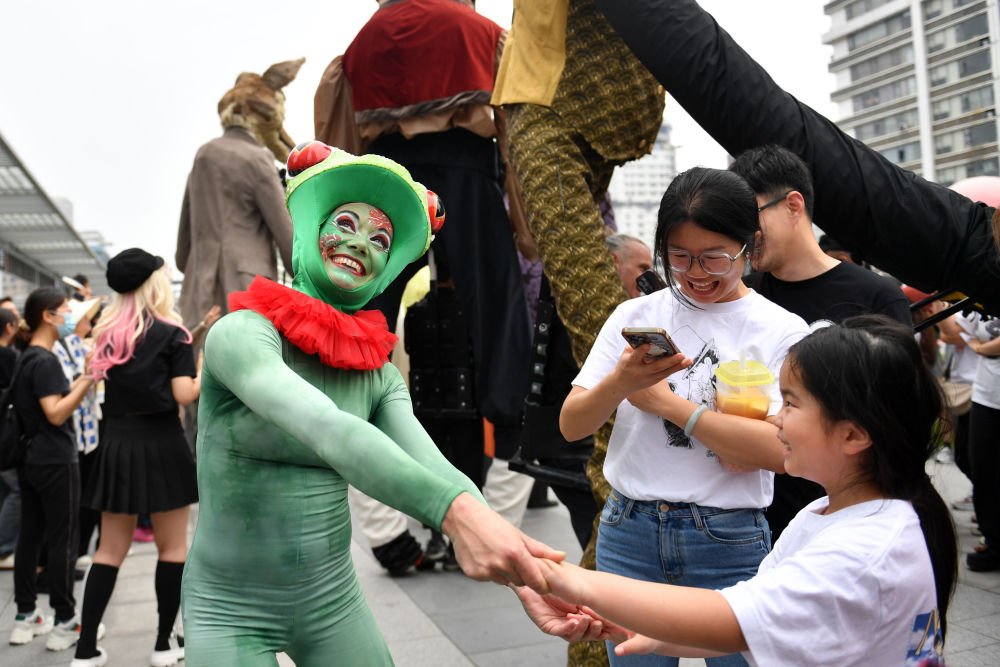 5月8日在長沙的演出現(xiàn)場,法國著名的阿奇博·卡拉曼特拉劇團演員們通過巨型木偶、馬戲和空中舞蹈等形式進行表演,營造出了夢幻、幽默詼諧和互動感強的演出風格,收獲了現(xiàn)場觀眾的陣陣掌聲。