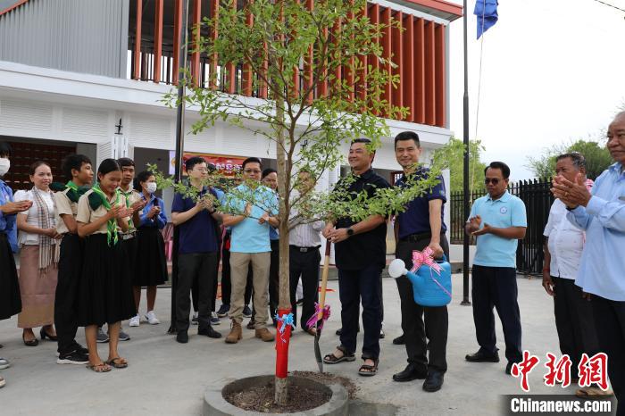 當(dāng)?shù)貢r(shí)間5月12日,在距離金邊以南約60公里的一個(gè)擁有125戶家庭、500余人口的小鄉(xiāng)村,柬埔寨民間社會(huì)組織聯(lián)盟論壇主席蓋里維希揮鏟添泥,中國(guó)和平發(fā)展基金會(huì)駐柬埔寨辦事處主任劉戰(zhàn)國(guó)提壺澆水,合力種植下一棵象征著中柬友誼的隆都花樹(shù)。