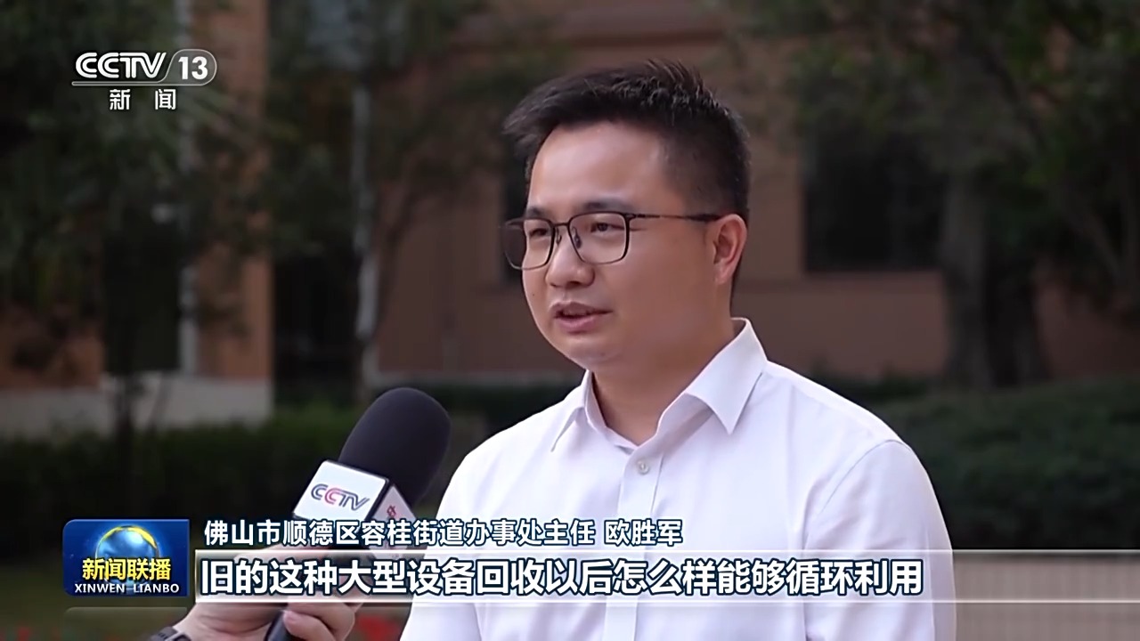 佛山市順德區(qū)容桂街道辦事處主任 歐勝軍:舊的這種大型設備回收以后怎么樣能夠循環(huán)利用,下一步我們也是由國資公司來跟我們本土的家電回收龍頭企業(yè)來進行開發(fā),我們跟企業(yè)正在對接。