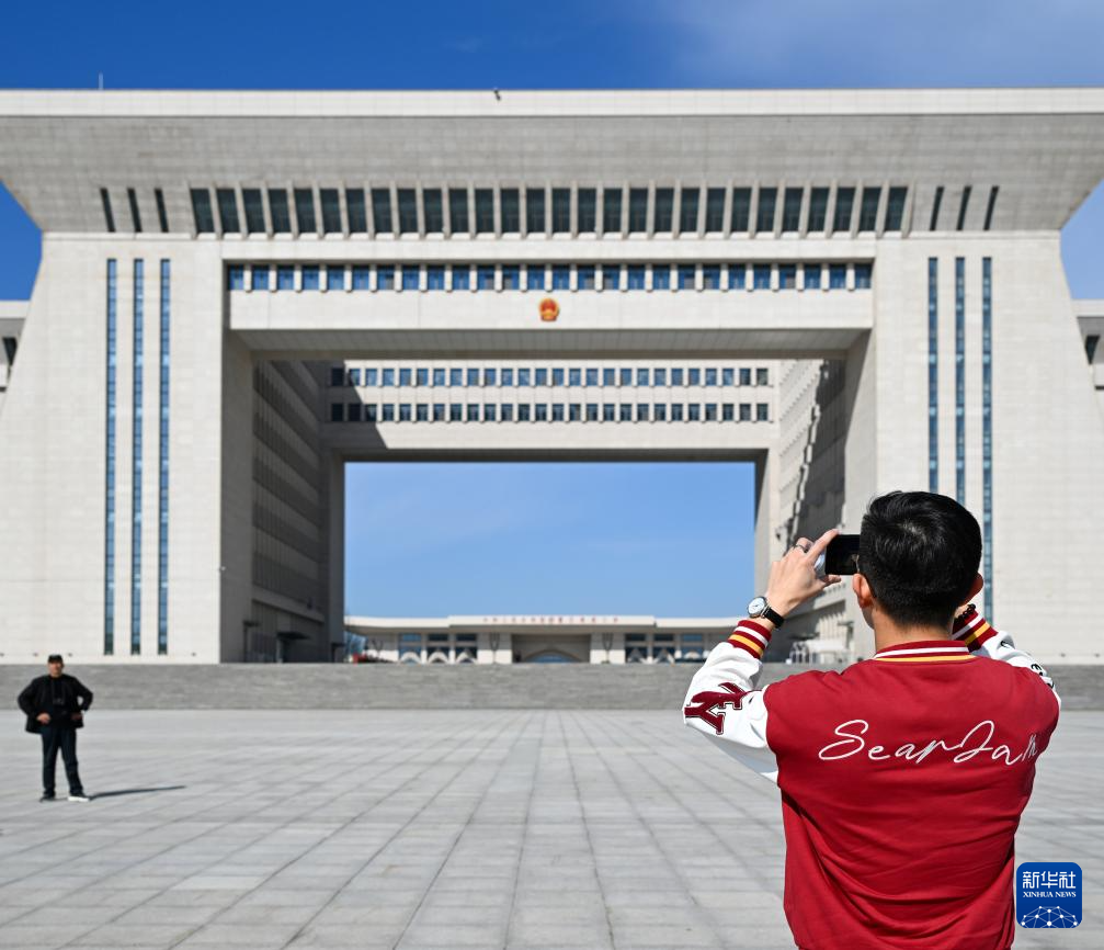 4月18日11時(shí)許,游客在霍爾果斯口岸新國(guó)門(mén)拍照留念。